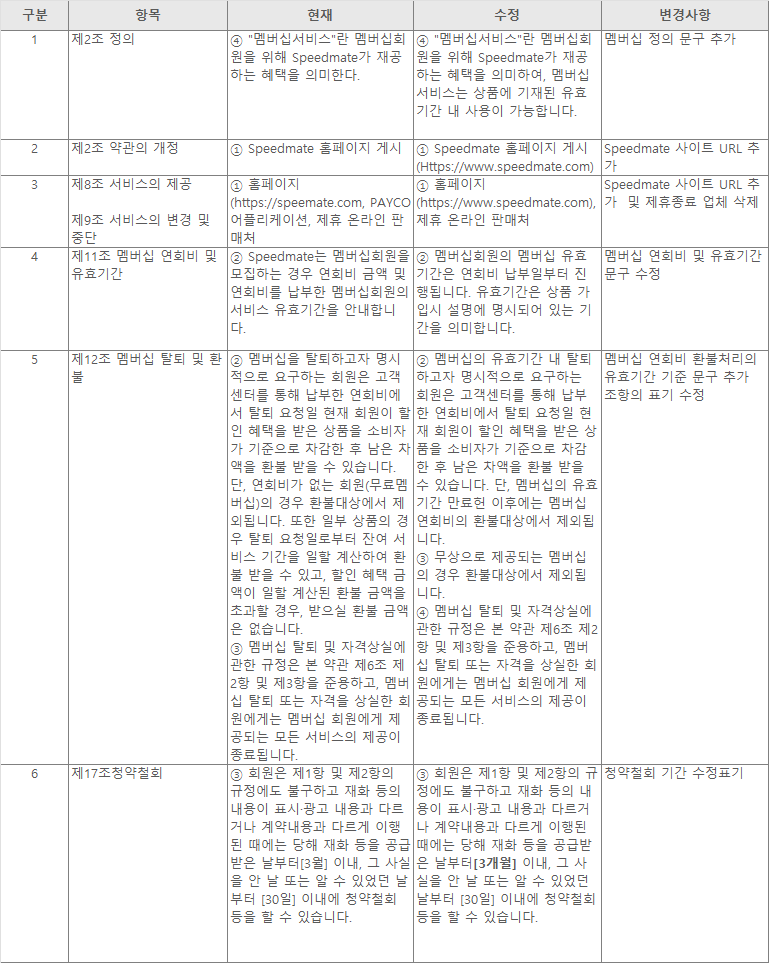 스피드메이트 이용약관이 변경되어 아래와 같이 고지 합니다.